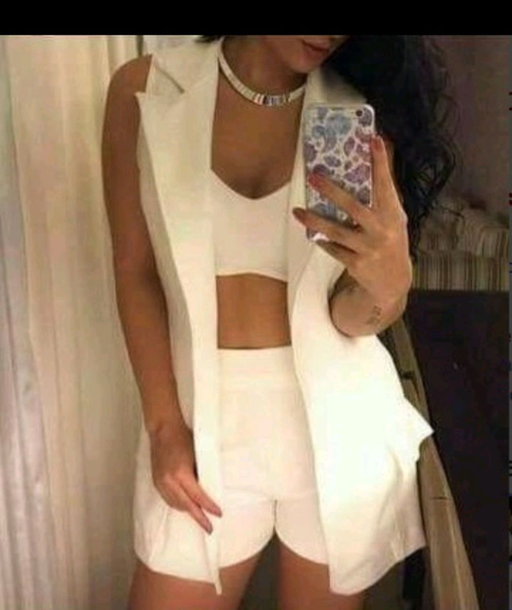 Conjunto 3 Peças Cropped Shorts Cintura Alta Colete Blazer