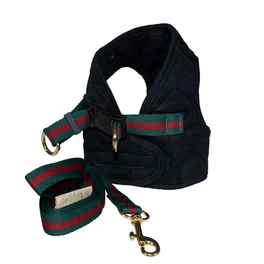 Colete Peitoral E Guia Para Cachorro Courino E Tecido Verde Estampa Animais