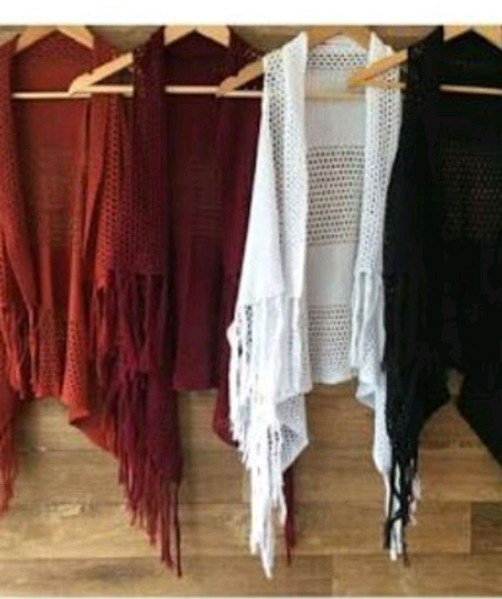 Colete Kimono Tricot Longo Franja Inverno Crochê Blogueiras