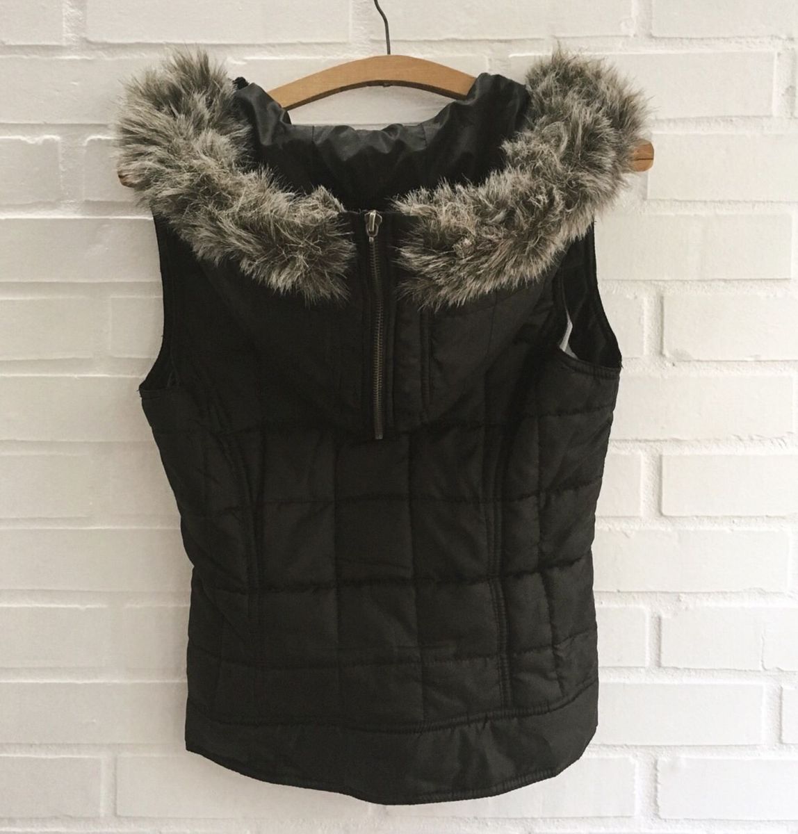 Colete Fofinho Com Capuz Peludo